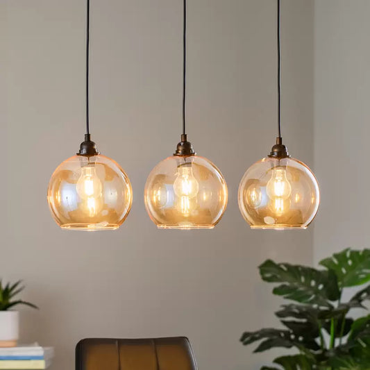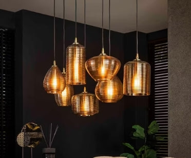 Hanglamp zwart amber glas 8-lichts - Lungo
